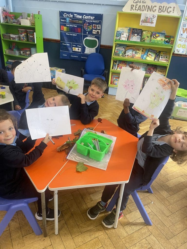 The children in Room 4 had great fun learning all about the season of autumn. They went on an autumn hunt around the Rosary Garden, where they collected lots of colourful leaves. The boys and girls then used the leaves to create Leaf Thieves and Leaf Monsters. Everyone also enjoyed making some beautiful autumn-themed art.