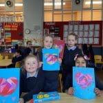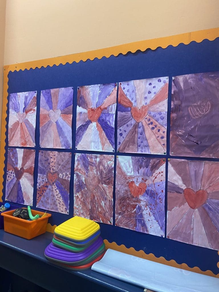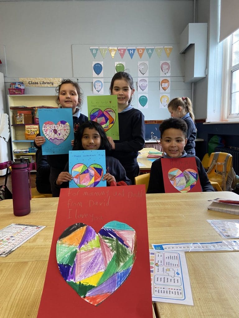The children in Room 5 have been busy creating lots of beautiful art this month. They have brightened up our classroom with colourful hearts and proudly showed off their letter writing and creativity by designing their own Valentine’s cards. We are so proud of the care and effort everyone put into their work!