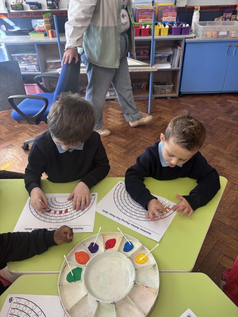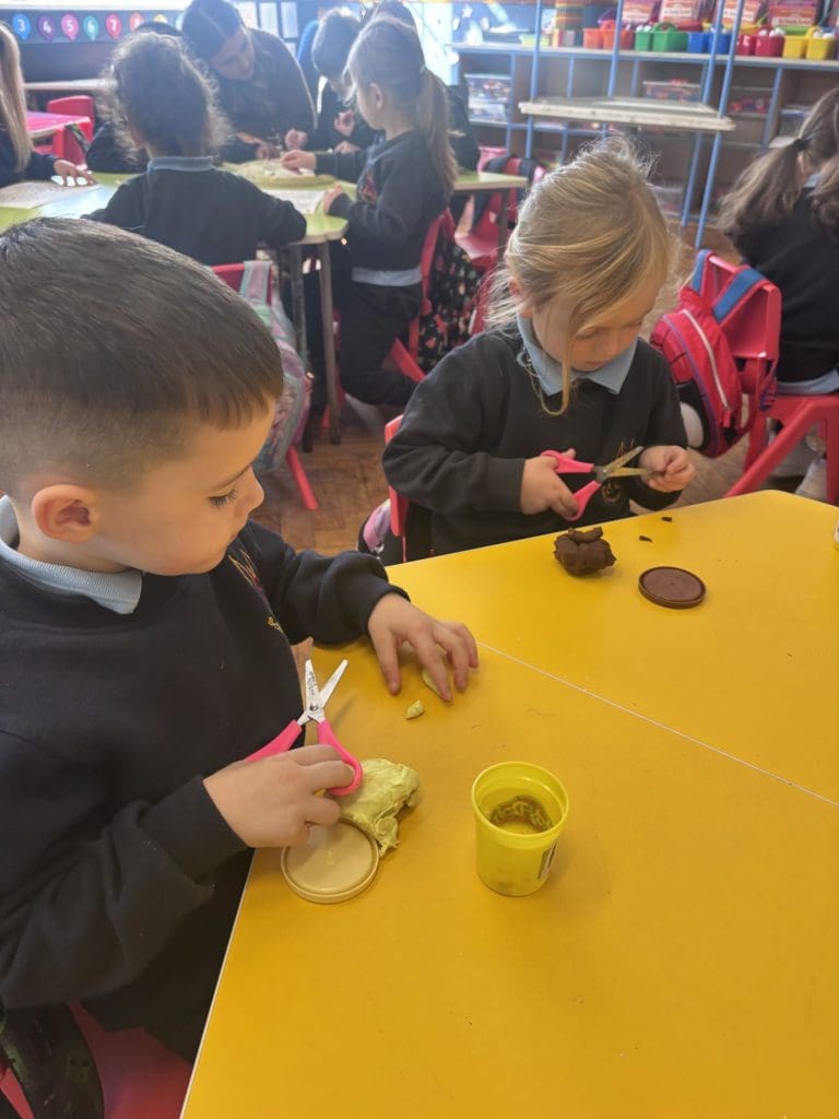 Room 3 have been working hard at their fine motor station this week! We’re making sure our hands and fingers are strong before we start our writing programmes! We’ve painted, played, used stickers and learned how to cut with scissors!
