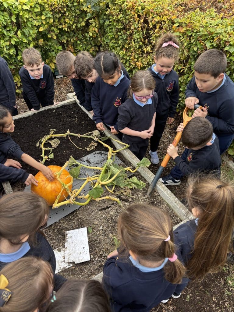 What an exciting start to our year of learning about growing our own fruit and vegetables! The children have been taking part in “Gardening with Gary”, exploring where our food comes from and how plants grow. We were thrilled to harvest the beautiful pumpkins planted by last year’s First Class, and now the children in Room 6 are planting their very own pumpkin seeds — ready to be harvested just in time for Halloween 2026!