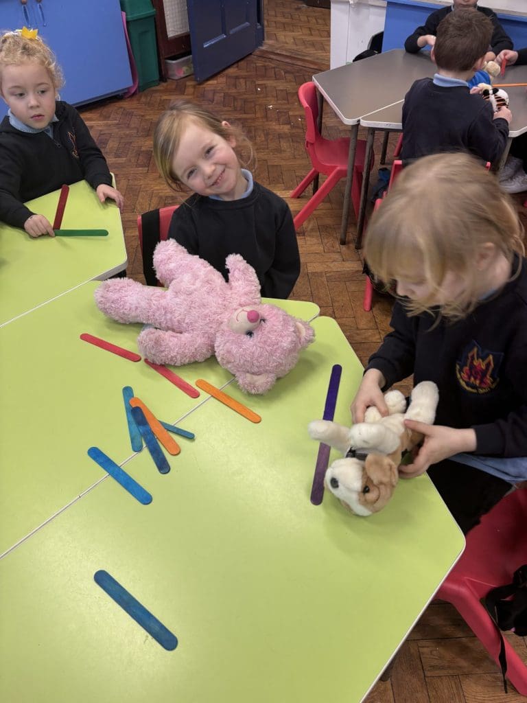 Junior Infants have been working hard in Maths and having some fun measuring length! We got to measure our friends and even our teddies today with lollipop sticks!