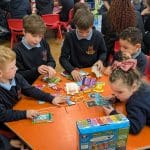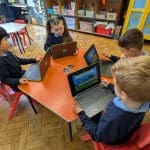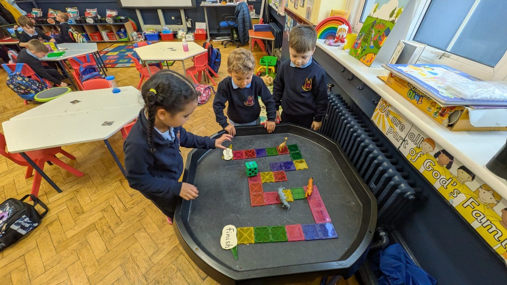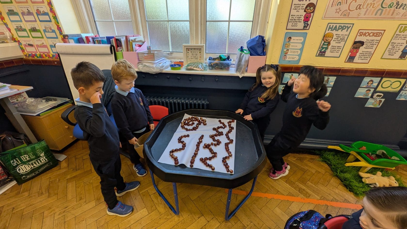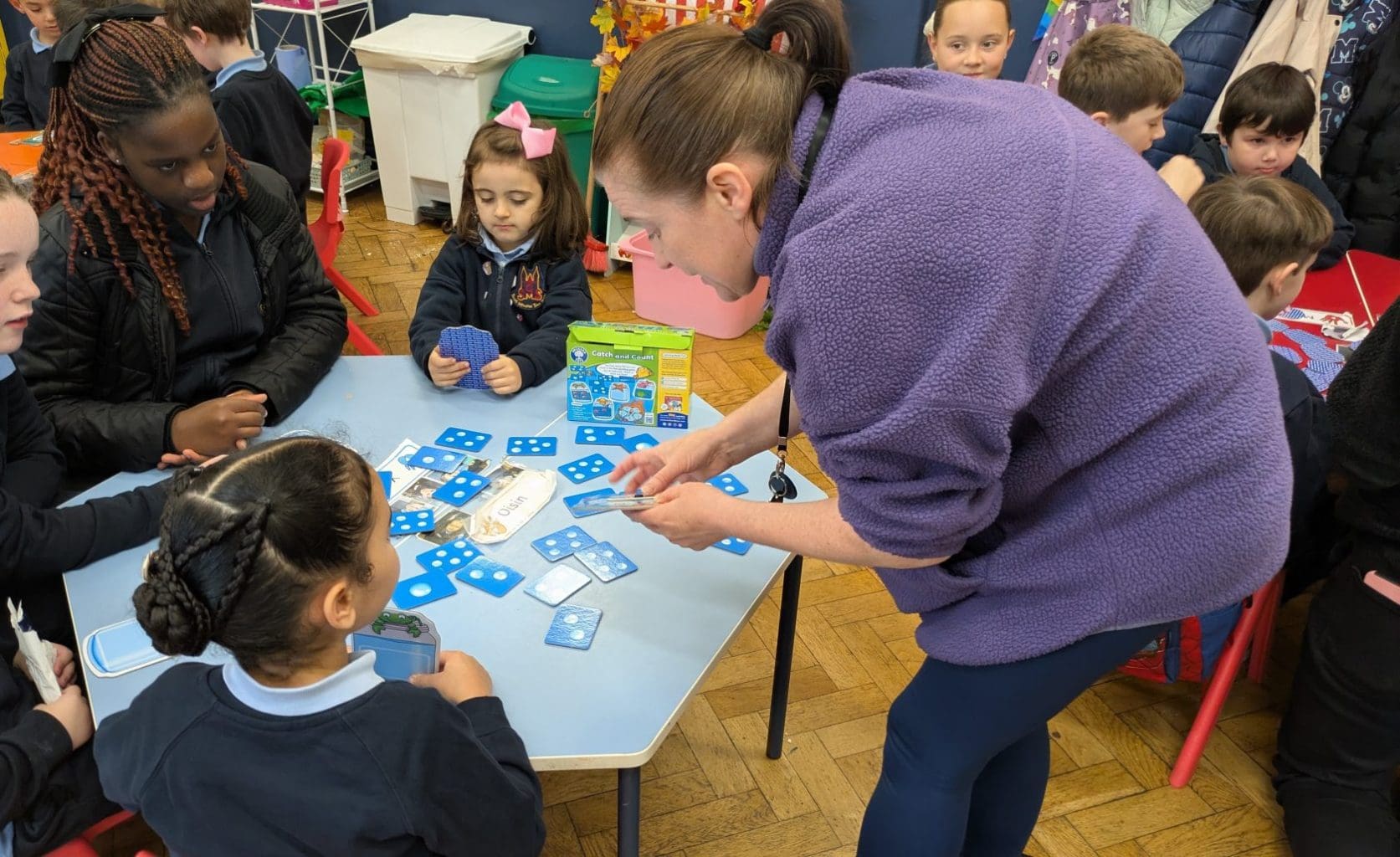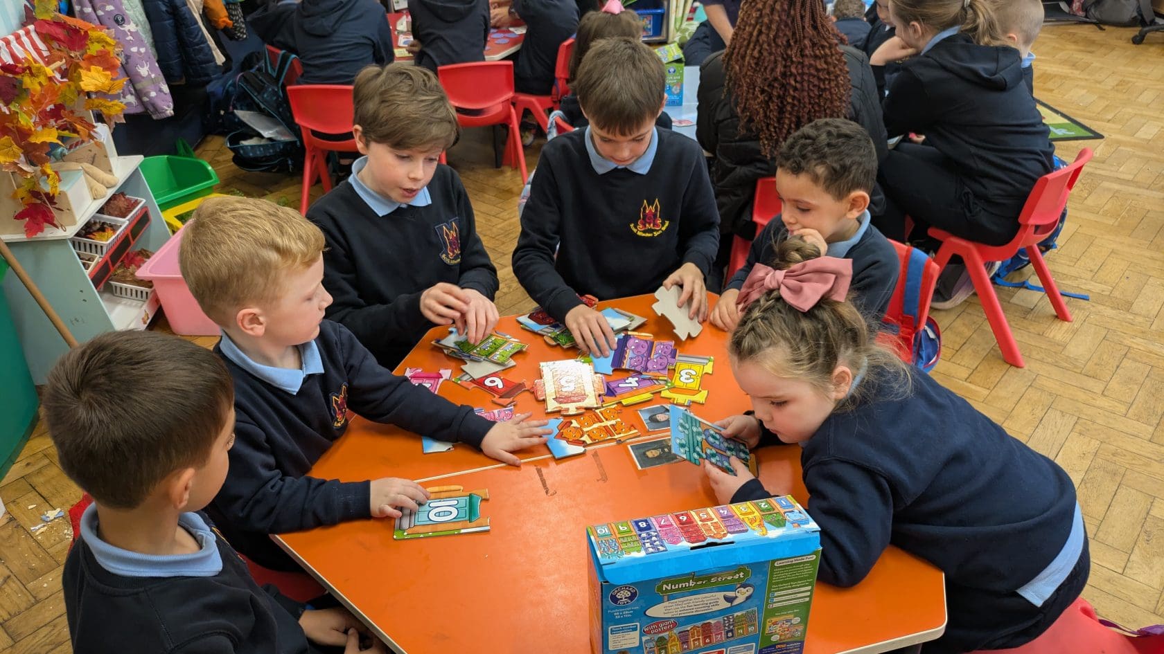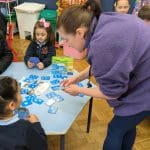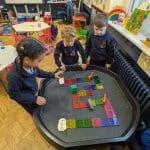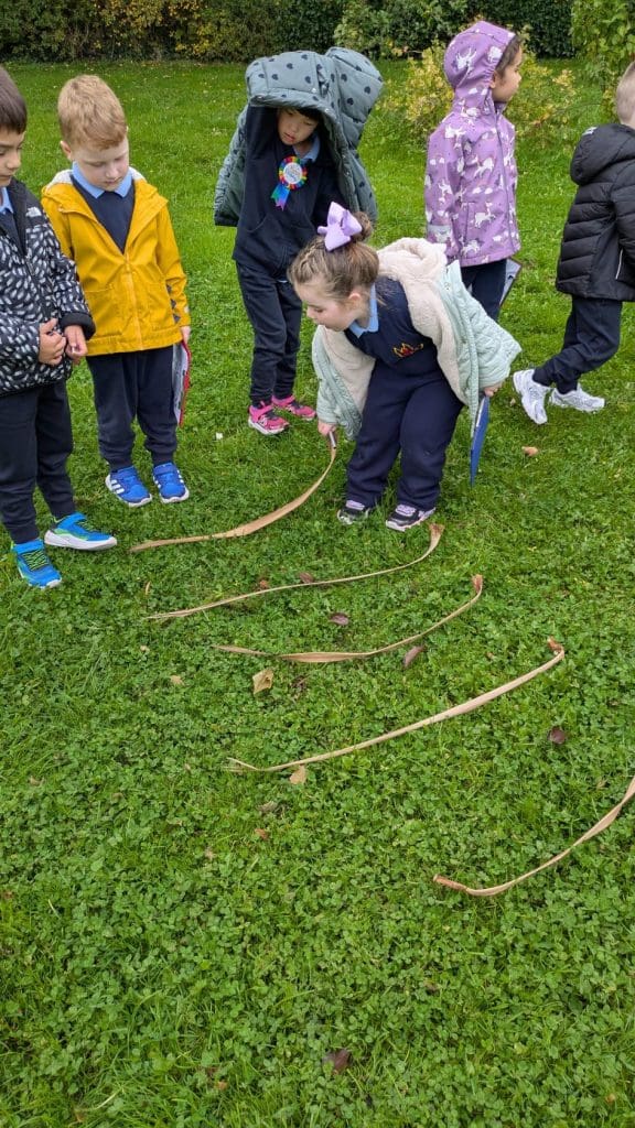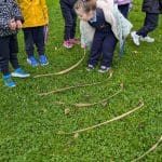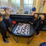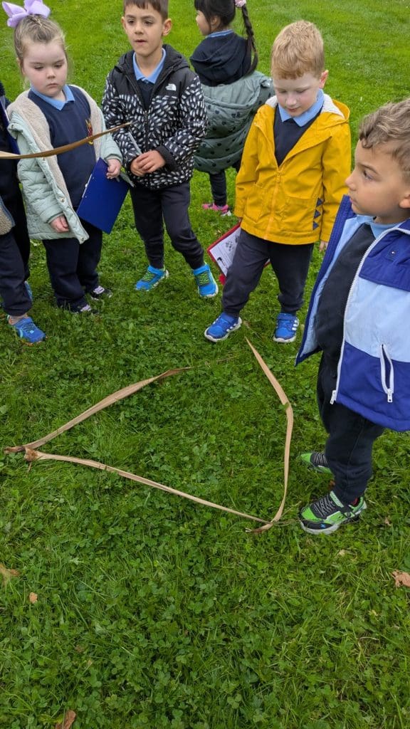 We celebrated Maths week from October 13th – 17th. We went on a maths trail using our maths eyes to investigate shapes, pattern and numbers all around our school. We found numbers on the yard for hopscotch. We also found numbers for fire assembly points. We made patterns and shapes using leaves and sticks. We spotted lots of patterns and shapes on our school building. 5th class also came to our class to play maths games with us. Finally we all had turns on the chromebooks to play online maths games too! Teddy Bear numbers is one of our favourites!!