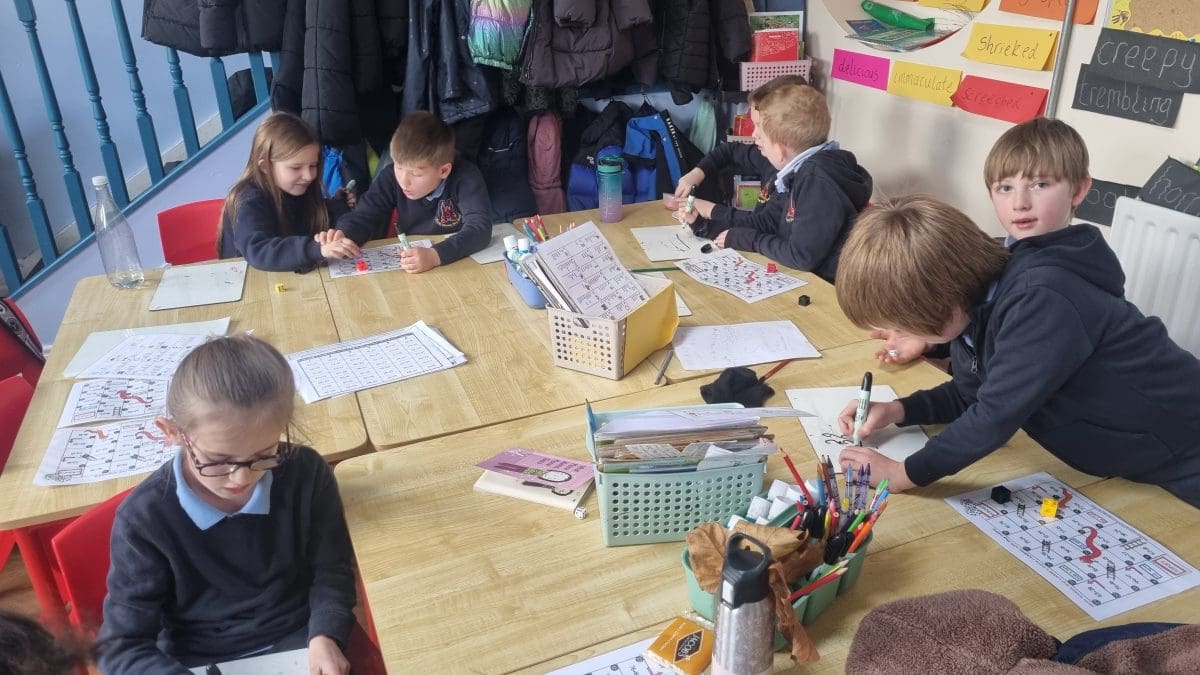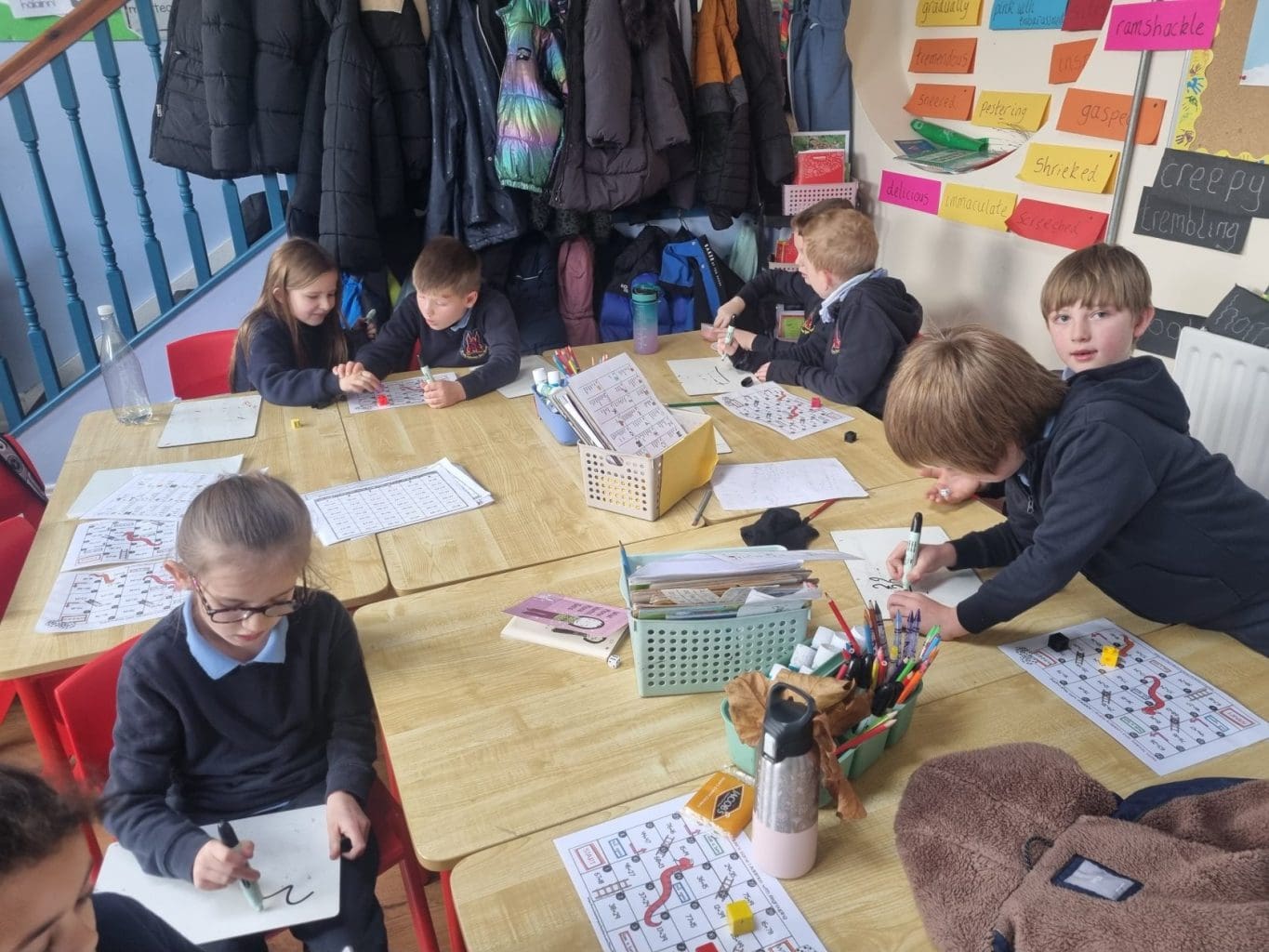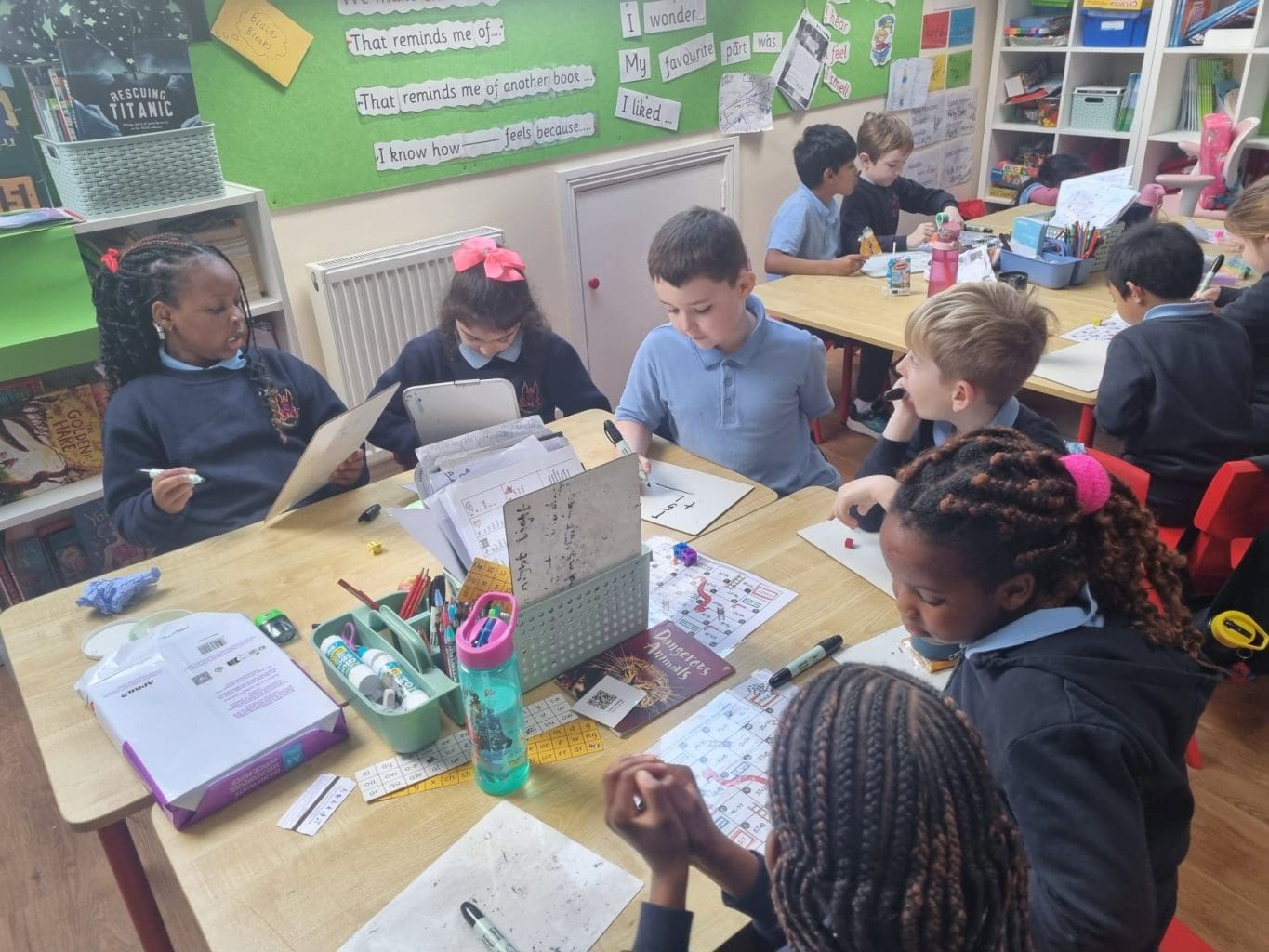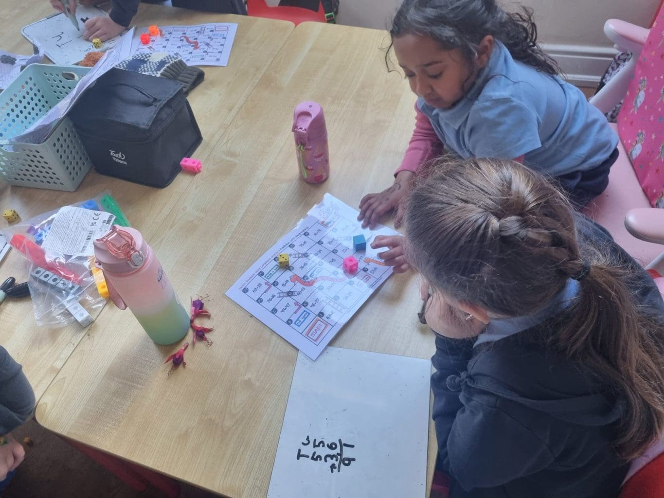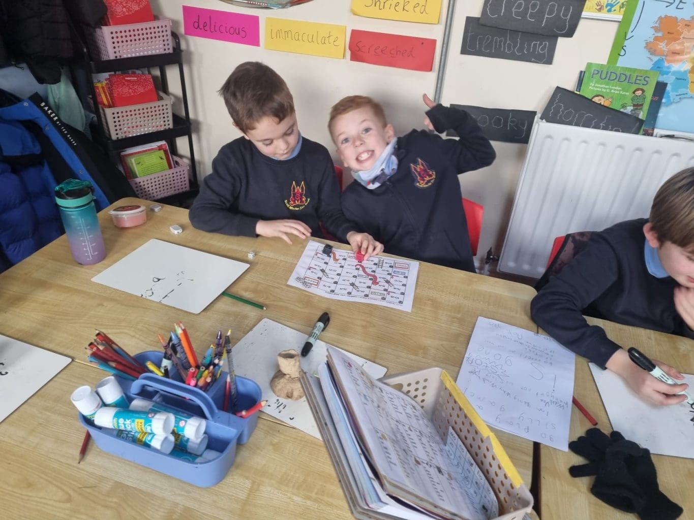 We are busy practicing our addition skills in Room 7 with tricky snakes and ladders!