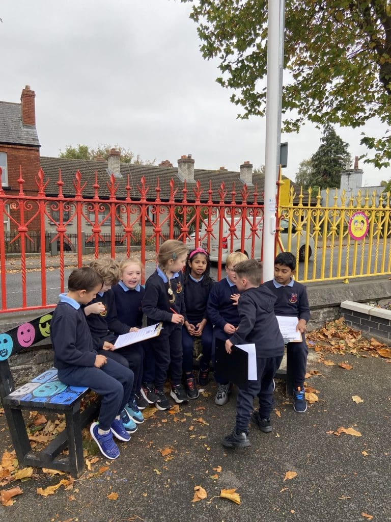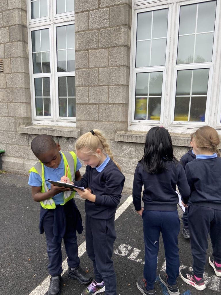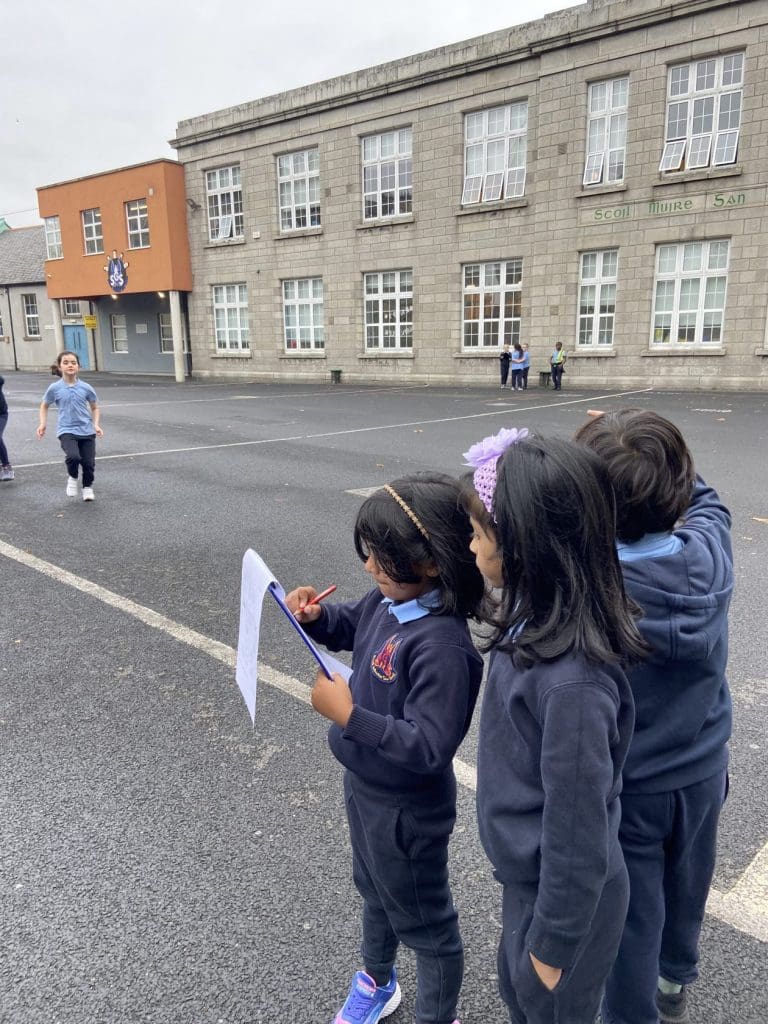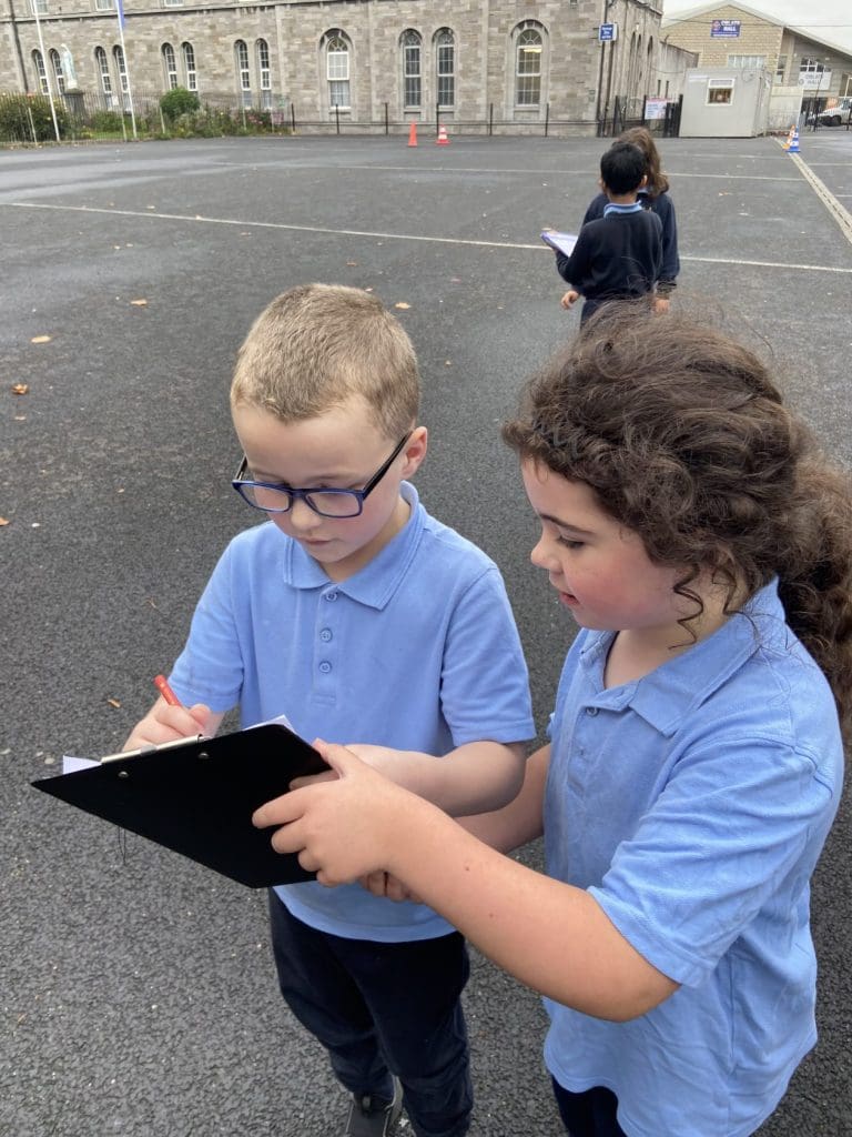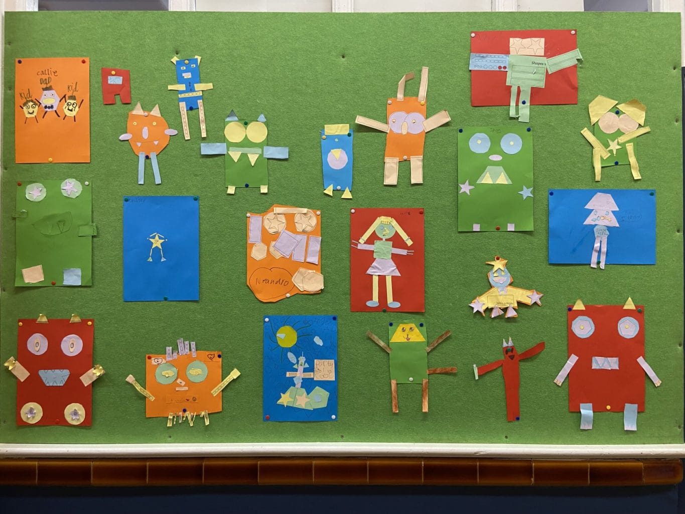 Room 5 have been celebrating Maths Week with lots of fun, hands-on activities! The children used their maths brains to explore different shapes and colours while creating bright and imaginative 2D shape monsters. They also took part in a Maths Trail around the school, discovering how maths is all around us — counting features of the school, spotting shapes in the yard and solving tricky maths problems about the school grounds. The children showed great teamwork and creativity, proving that using our maths brains can be fun and exciting, and that maths is all around us every day!
