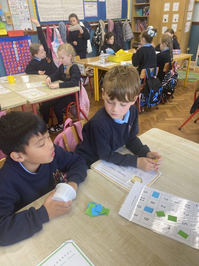 We had such a great Maths Week! We used our Maths Eyes everyday. We made shapes with sticks, played Maths games with our friends, went on a shape hunt outside and we used our laptops for Maths! We finished up the week with a Maths Quiz in the hall with 1st and 3rd Class too!