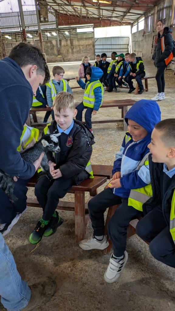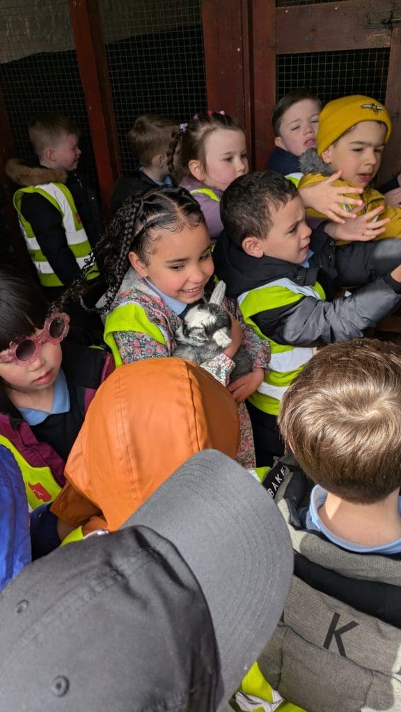 On Wednesday 22nd April, we went on our school tour to Newgrange Farm. We had a long bus journey to our destination but we kept the driver entertained with our lovely rendition of ‘Old MacDonald Had A Farm’. Once we arrived, we had an action packed day holding and petting animals such as lambs, chicks, kids, pigs, horses and bunny rabbits. We fed the chickens, ducks, geese and turkey. We also gave the lambs milk from their bottles. We saw cows, pheasants, goats, donkeys and lots of other animals. We had lots of fun playing on the ride on tractors, hide and seek in the hay maze, plaing at the water play area, the sandpit and the tunnels. We had an outdoor picnic after all the fun and everyone was starving!! Finally, we returned to school by bus with many sleepy heads on the bus home!!! All the boys and girls said ‘It was the Best Day Ever’! Memories for a lifetime.