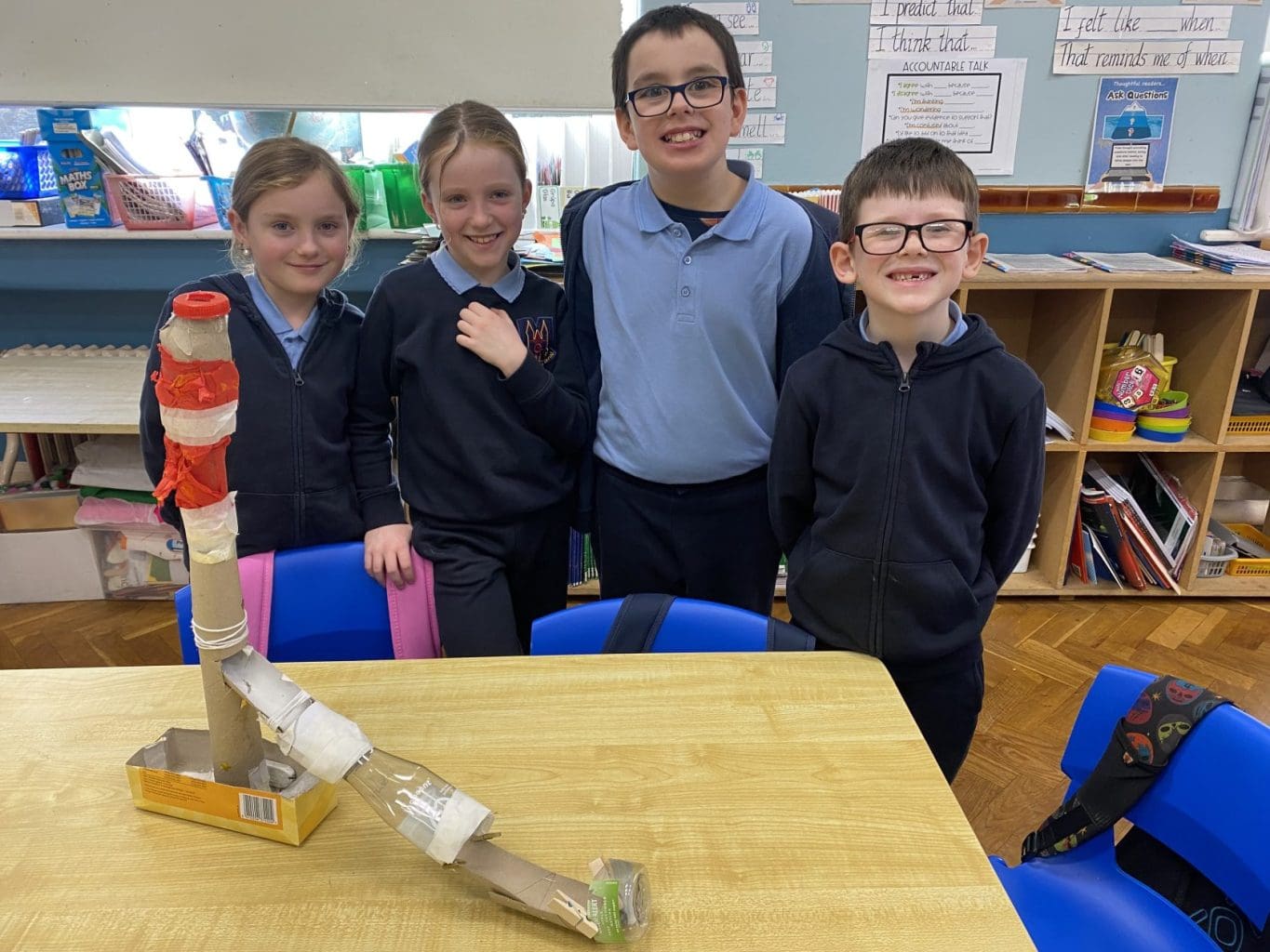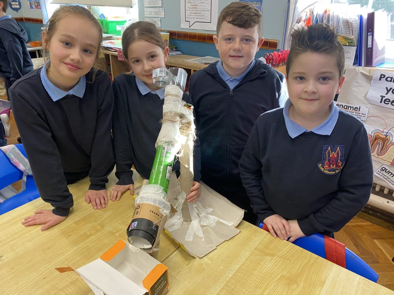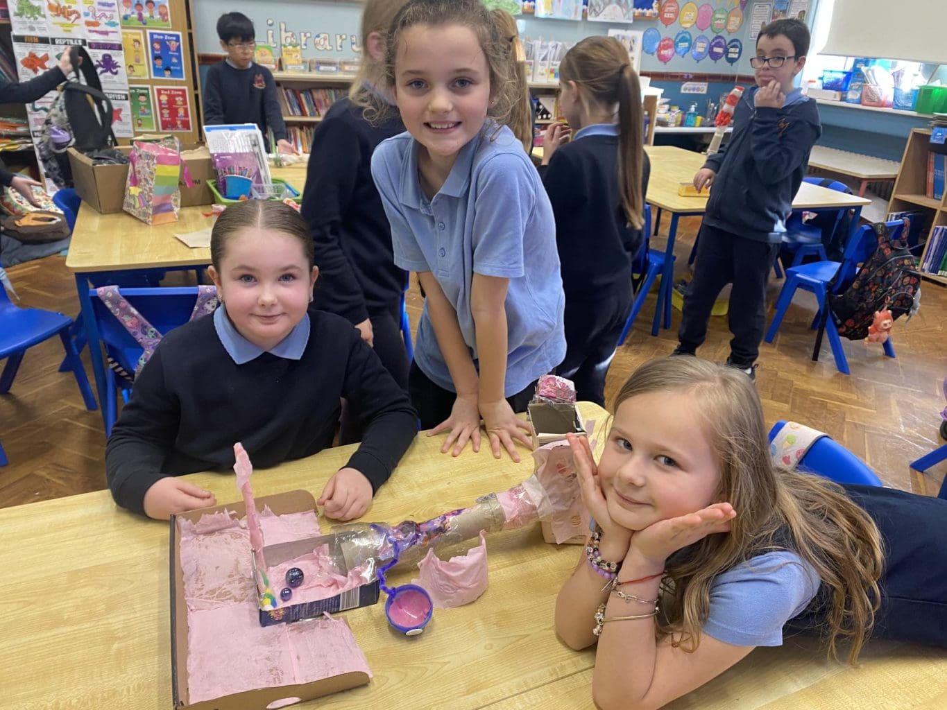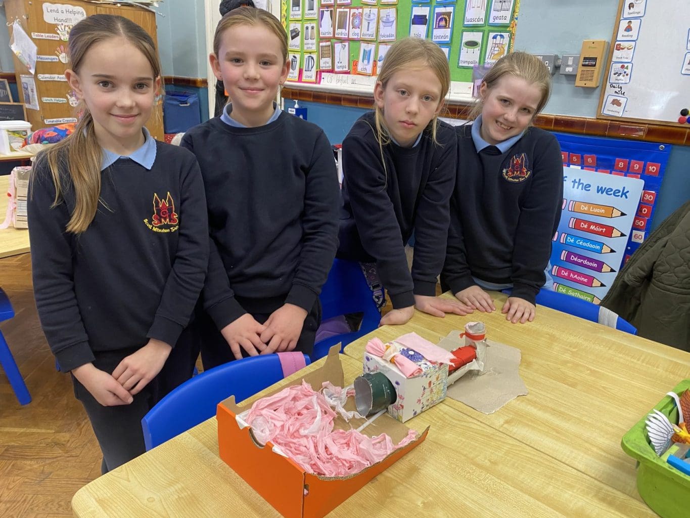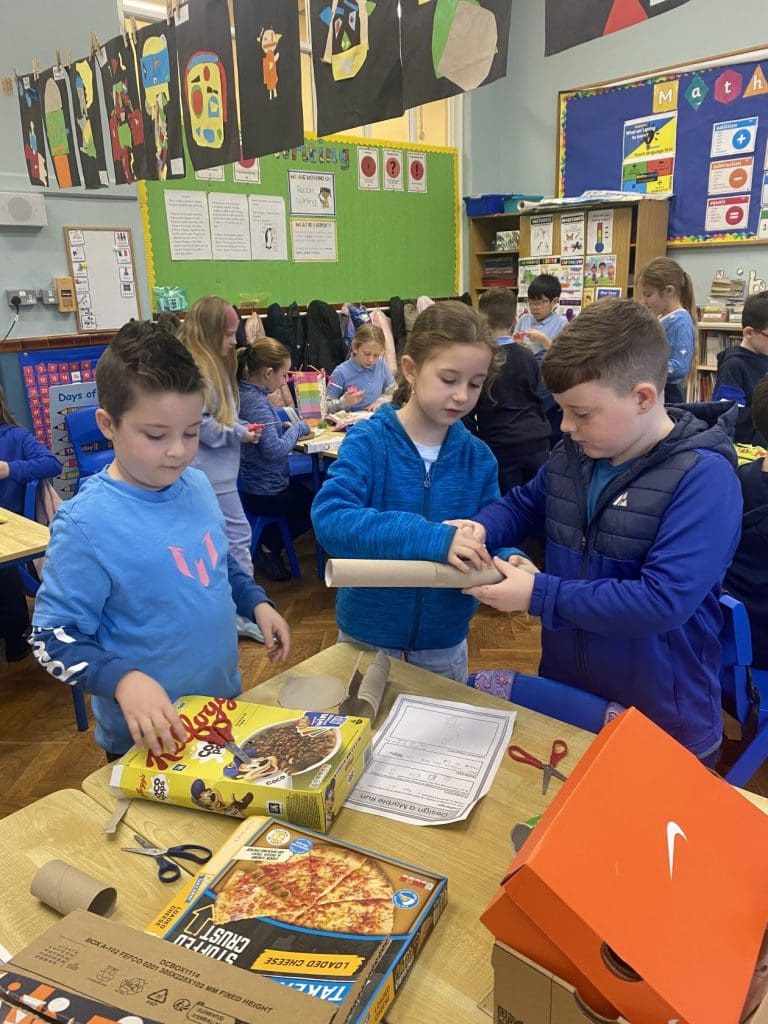 For Science Week 2025 Room 9 created their own Marble Runs. We got into groups, collected materials and planned out our creations. We spent lots of time cutting, sticking, decorating and testing out our marble runs with different sized marbles. We showed off our inventions to our class and to the other Third Class. We rated our marble runs and wrote down what we would do differently next time! It was a great success!