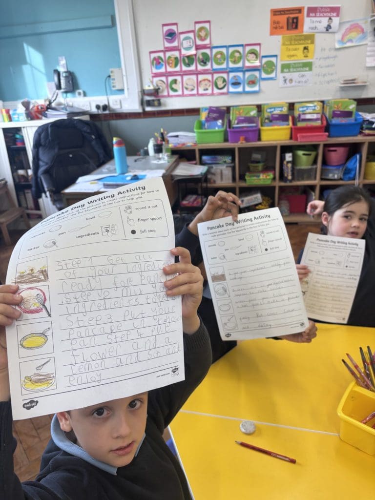 Senior Infants had a pancake filled day with designing pancakes, writing procedures on how to make pancakes and then tasting some pancakes!