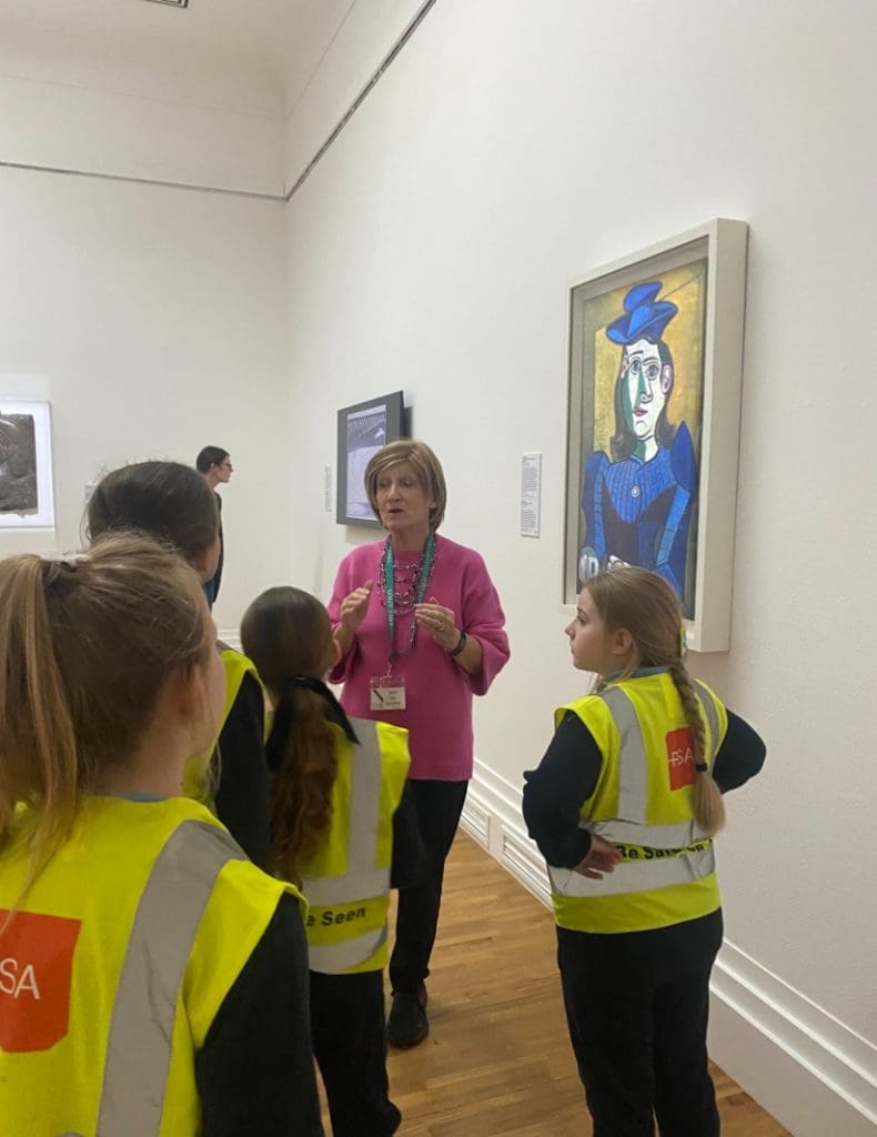 In Room 9 we have been learning a lot about the Spanish Artist, Pablo Picasso. We were very lucky last Thursday to get the chance to go to the Picasso Exhibition in the National Gallery of Ireland. We saw so many of Picasso’s famous paintings, sculptures and ceramics. Our guides taught us about Picasso’s life and about his amazing imagination and then we got the chance to create our own Picasso-inspired pictures! We went to the playground afterwards, it was a great day out!