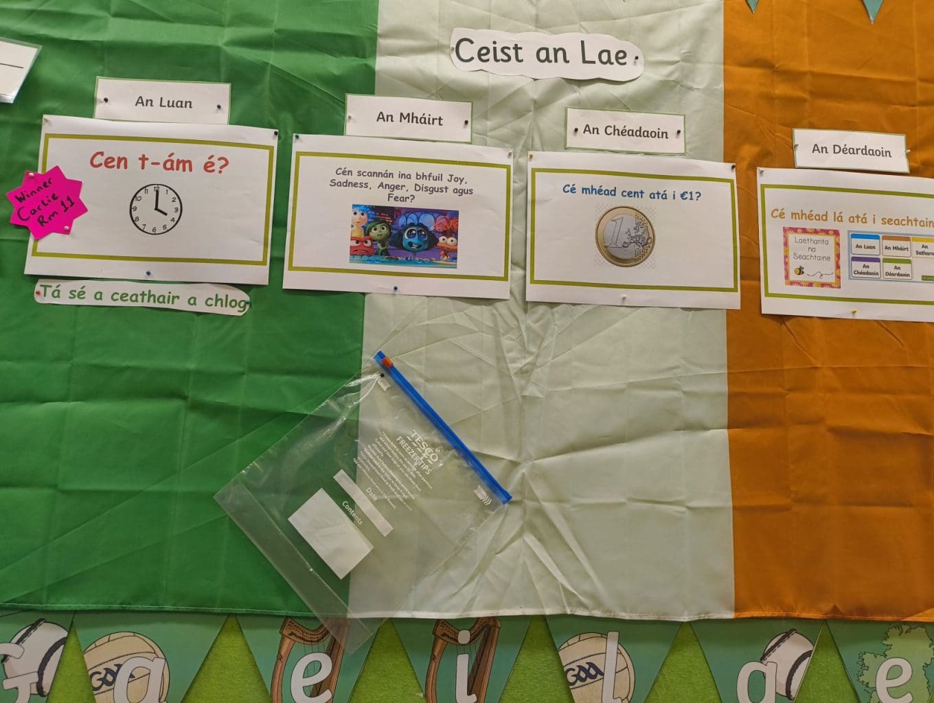 We have been celebrating Seachtain na Gaeilge all week. The children have had lots of opportunities to use the Irish they have learned through PE, hurling, yard games, quizzes art and lots more!