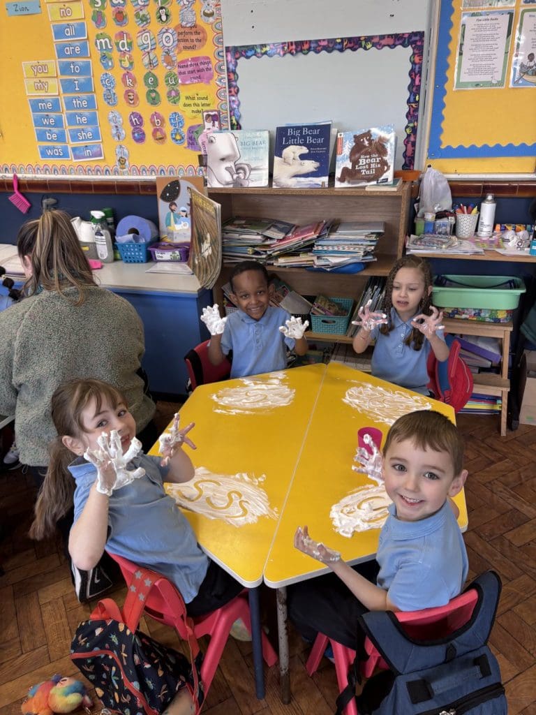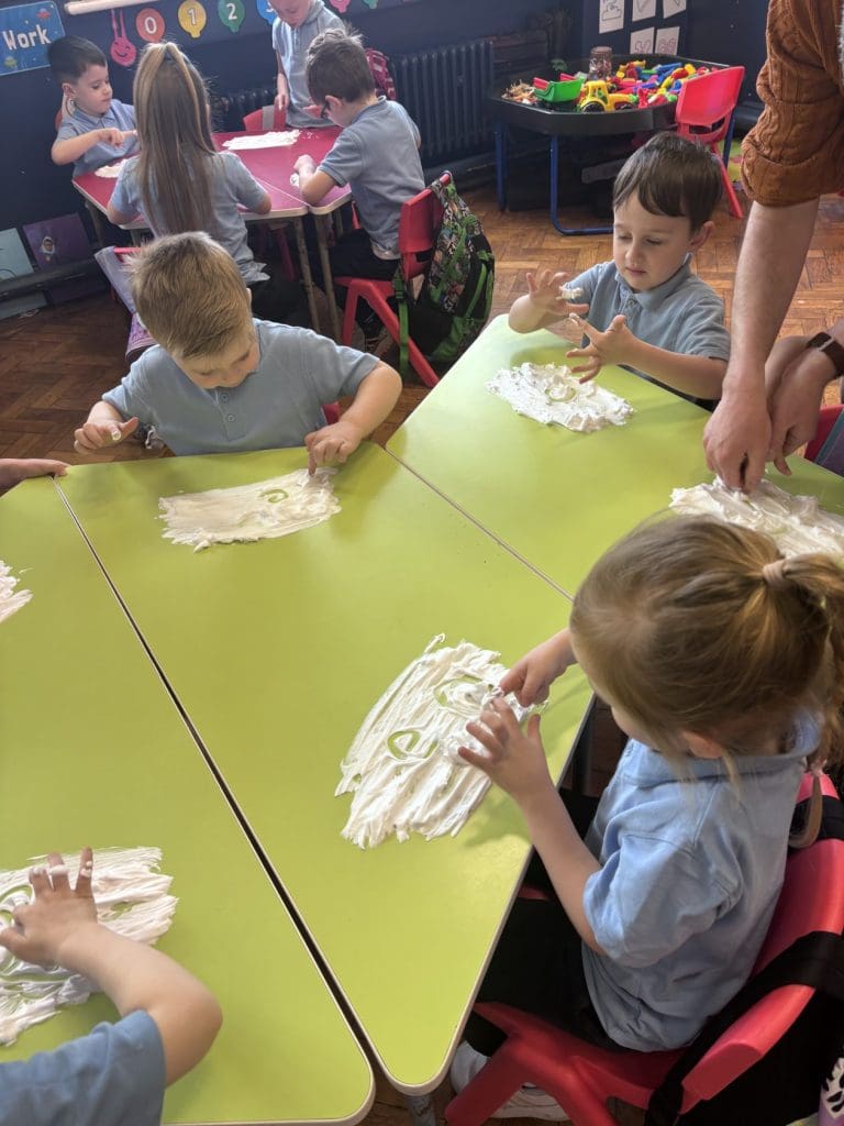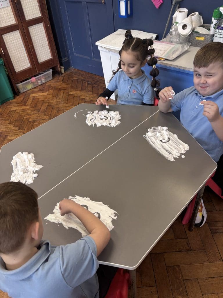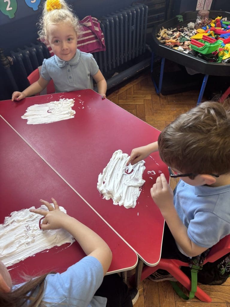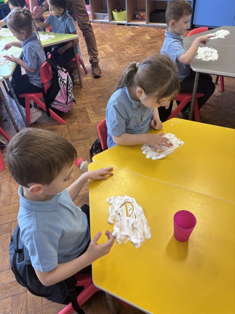 Junior Infants had a special treat this morning as we got to practise our writing workshop in shaving foam! Check out are amazing letter formation in our foam. We had great fun and we got very messy!