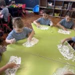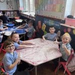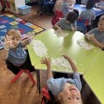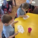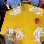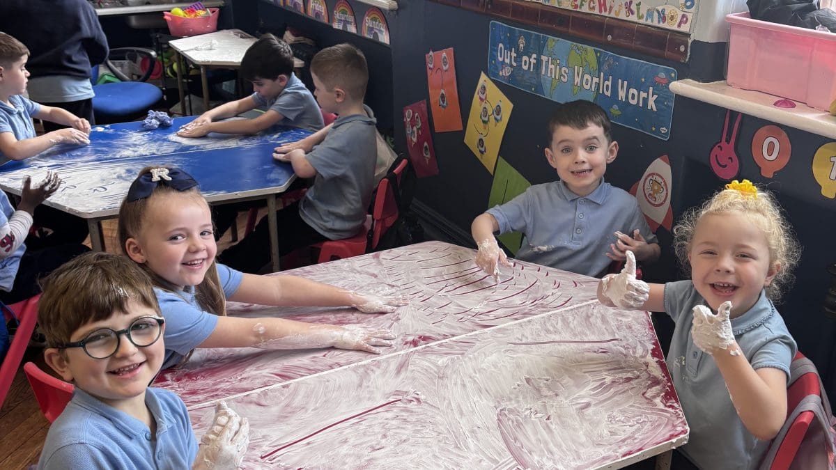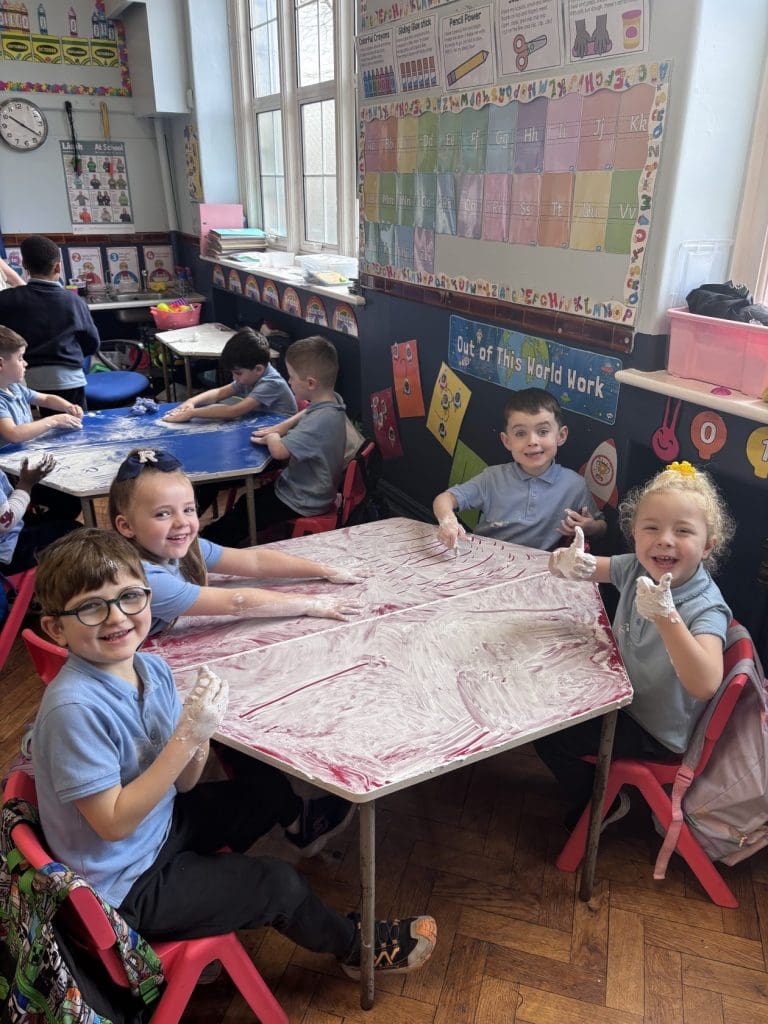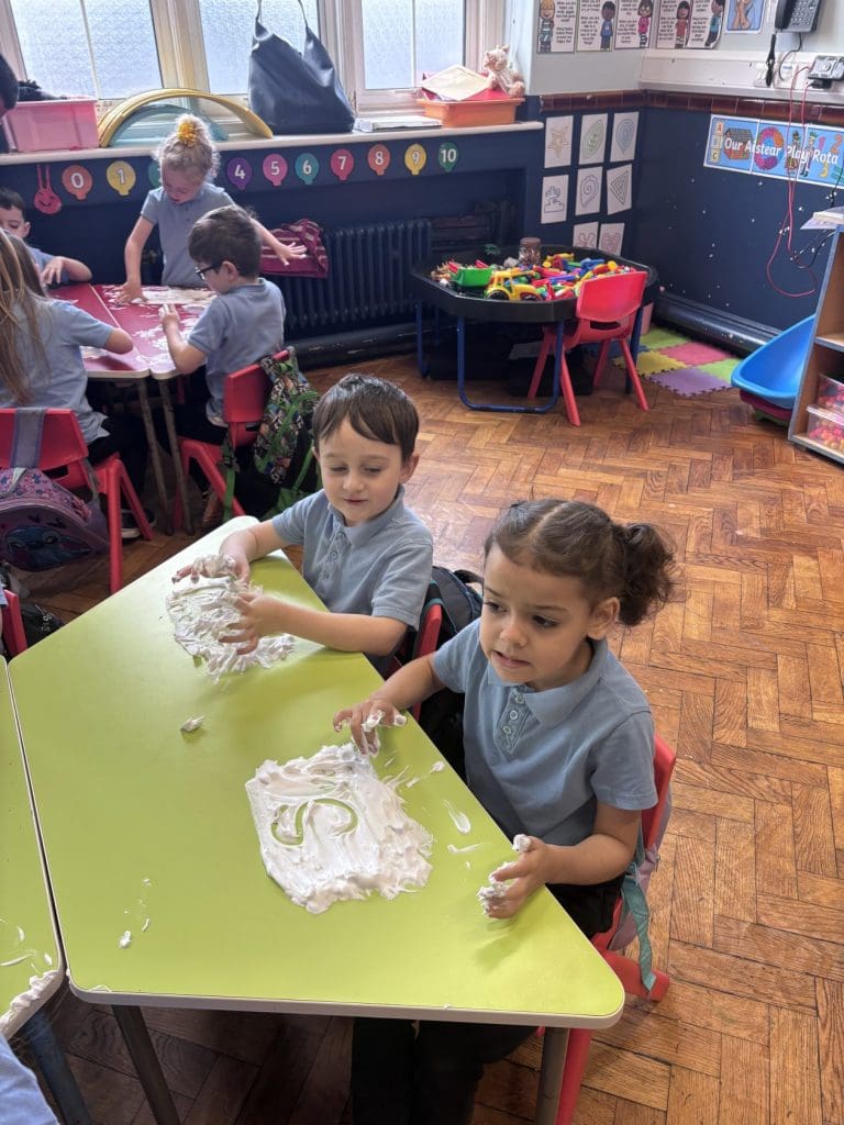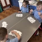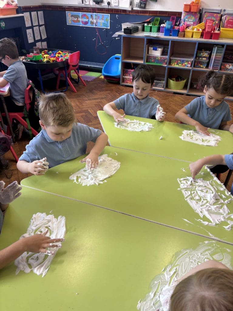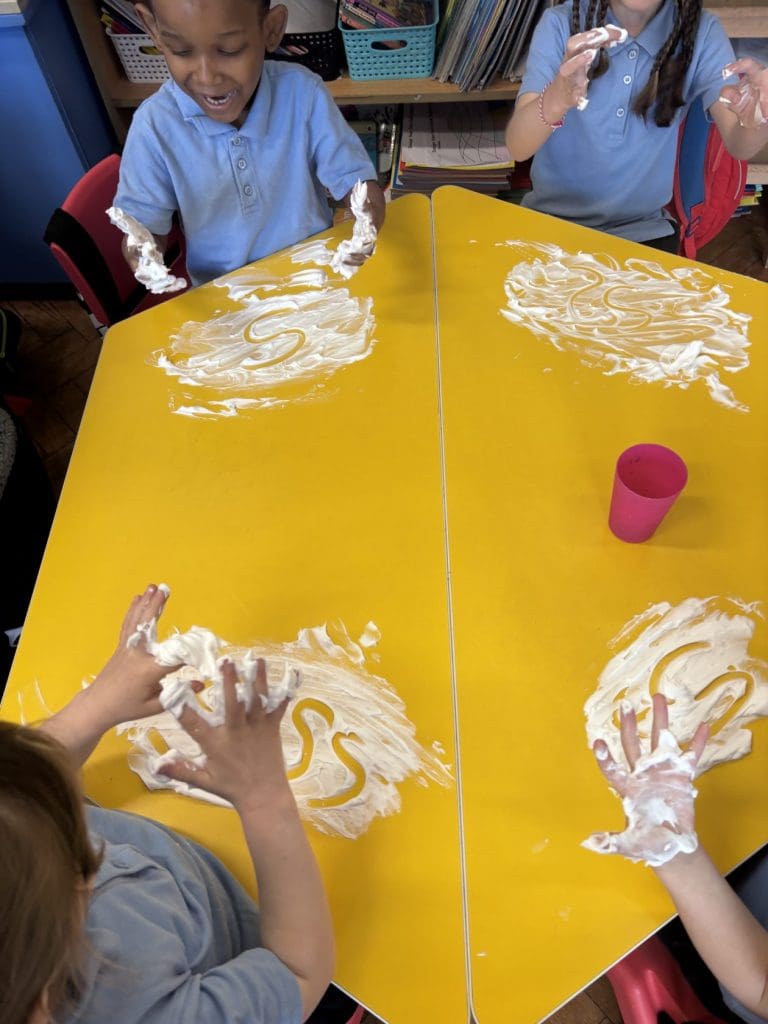 Junior Infants had a special treat this morning as we got to practise our writing workshop in shaving foam! Check out are amazing letter formation in our foam. We had great fun and we got very messy!