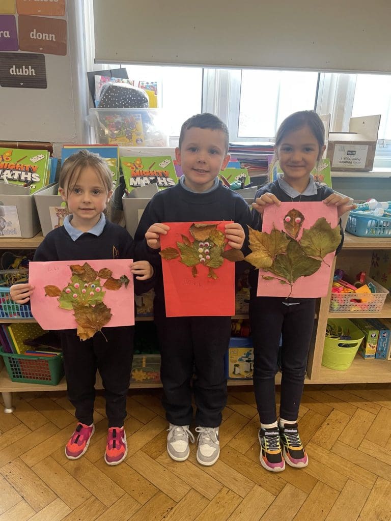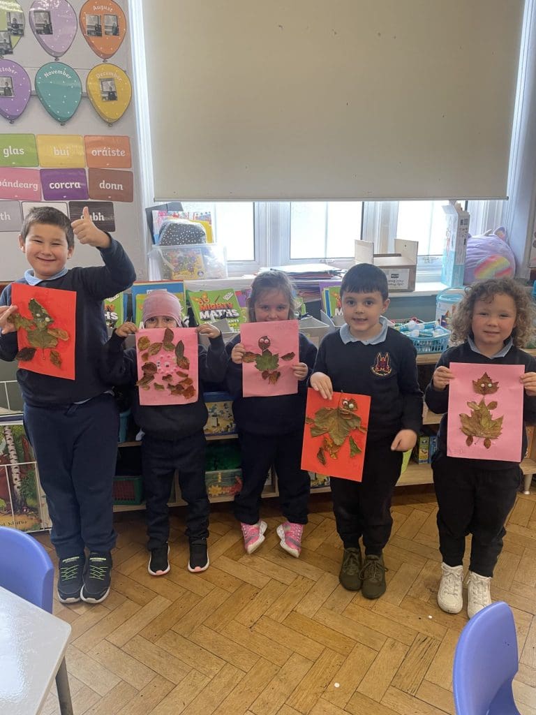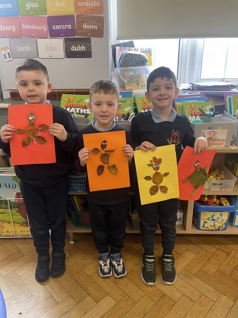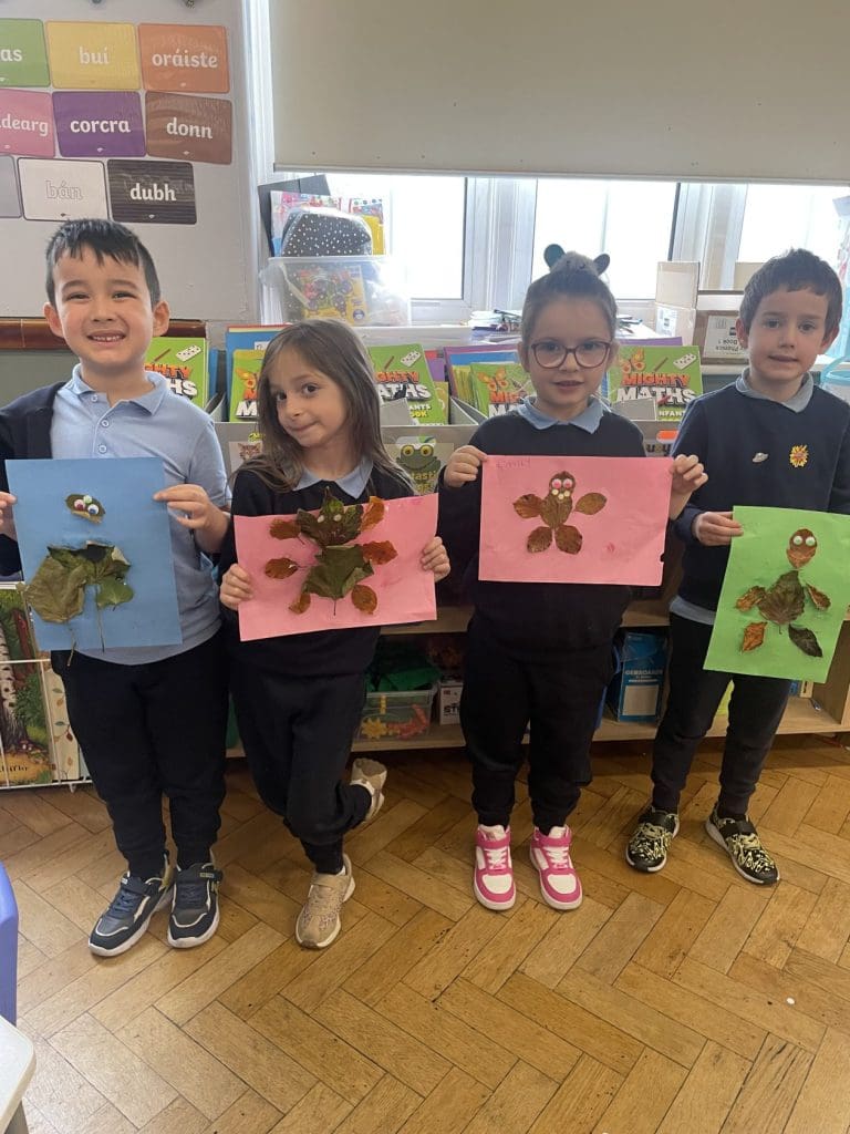 Senior infants have been loving learning all about autumn the last few weeks. We read The Leaf Thief book in class and created our own leaf thieves with some colourful autumn leaves. We have great creativity in room 4!