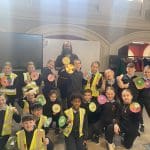 Last week Room 9 & Room 16 visited Dublinia to learn more about the Vikings! Viking Paul brought us through the amazing exhibition where we held a Viking shield and visited a Viking home. We then became archaeologists and we dug for some artefacts to find out more information. We made Viking shields to bring home for protection! What a great day!