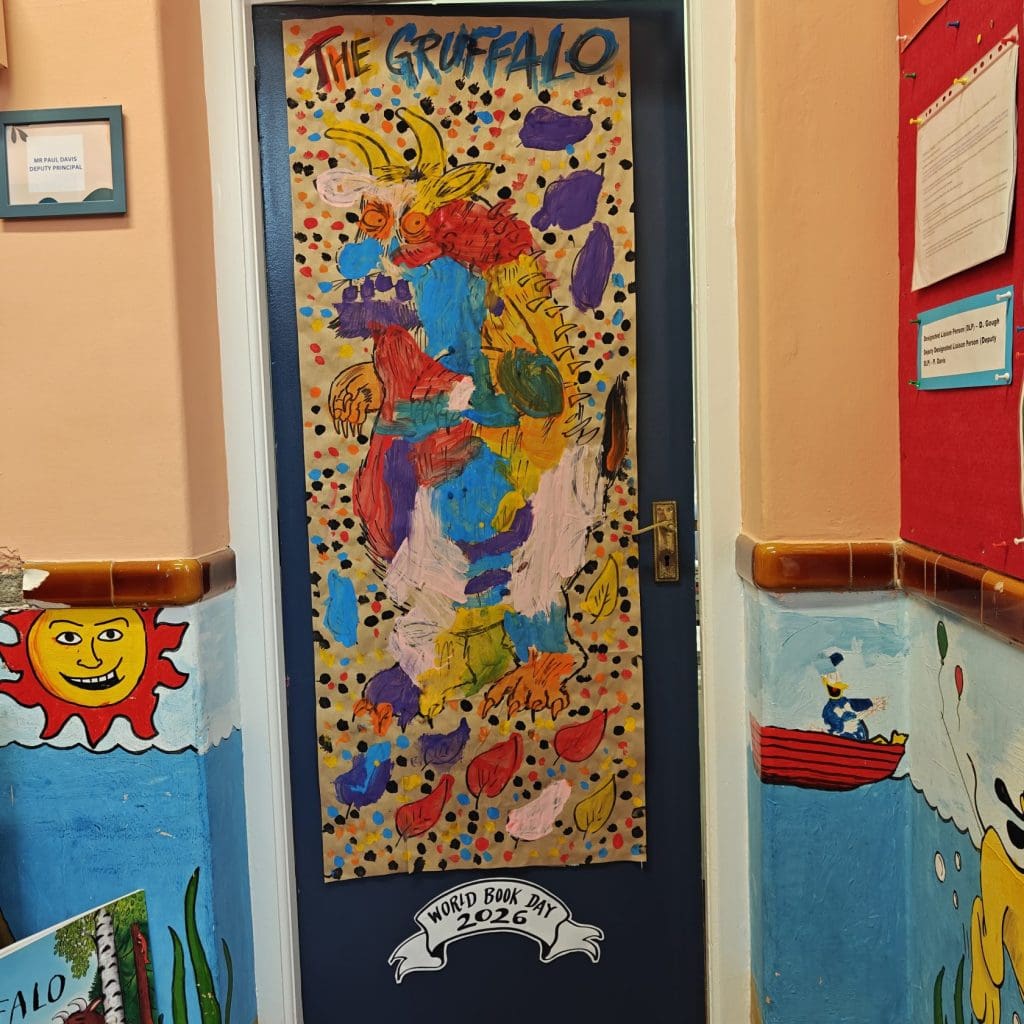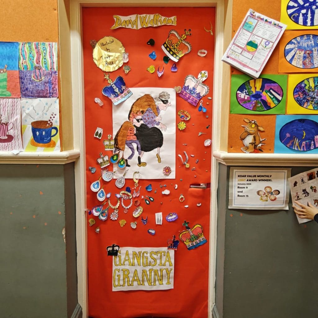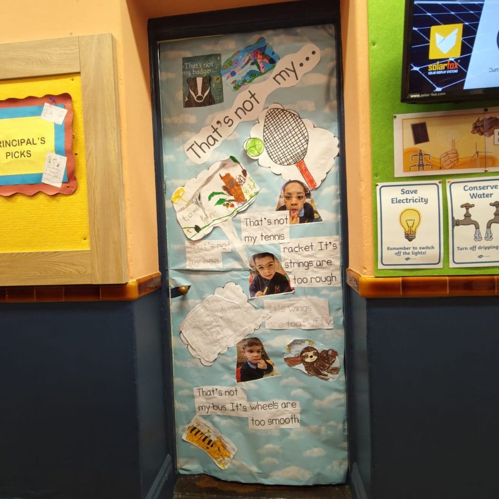 Walking down the hallways felt like stepping into a library of stories. The doors featured vibrant illustrations, imaginative scenes, and plenty of familiar faces from books that our pupils love to read. It was wonderful to see the pride the children took in their work and how excited they were to share their creations with other classes.